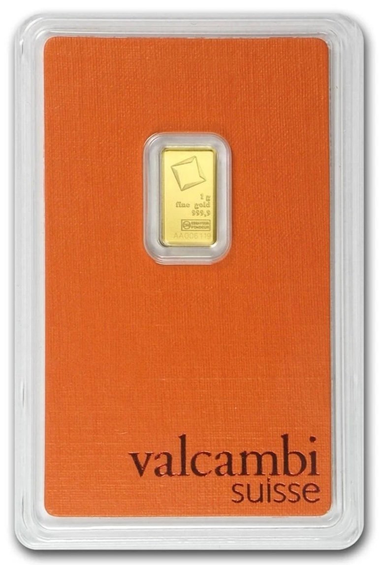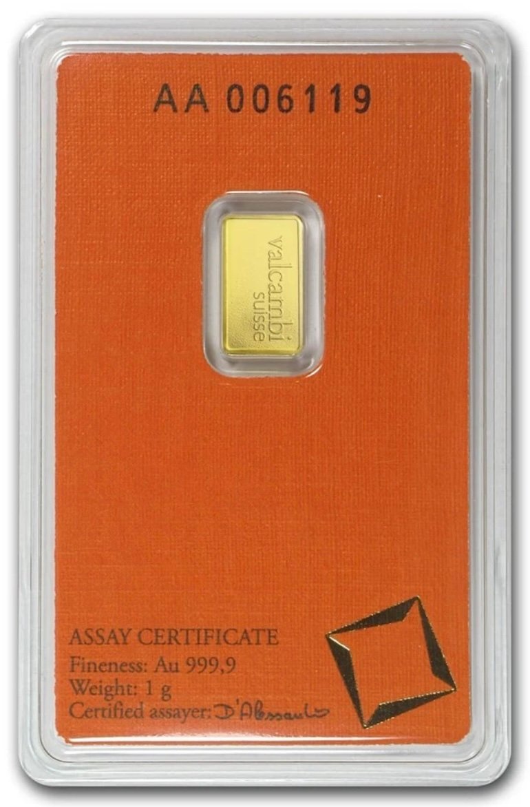 1 Gram Valcambi Suisse .9999 Fine Gold Bar in Assay quantity