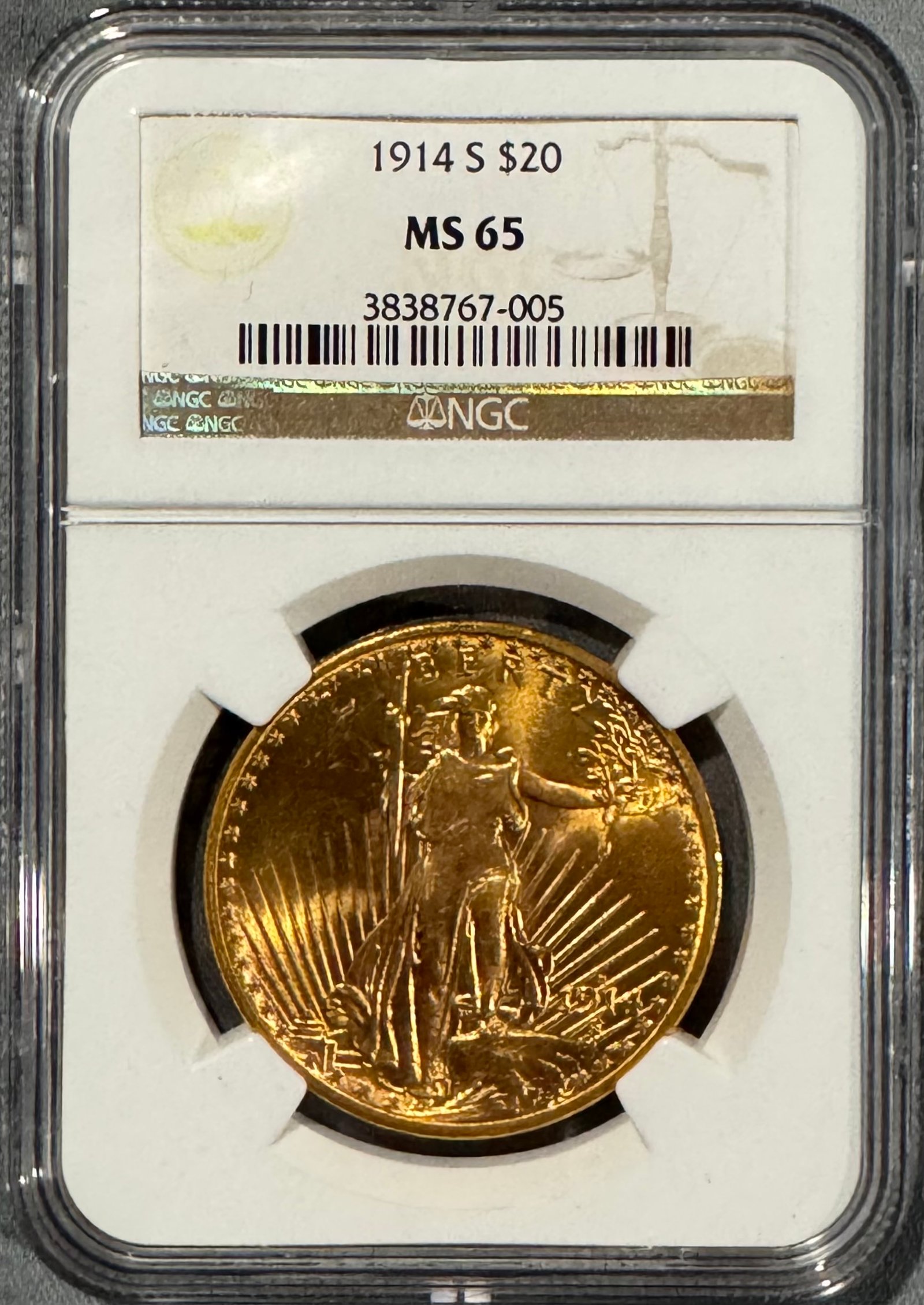 1914 S $20 St. Guadens Double Eagle NGC MS 65, Clean Bright Coin!