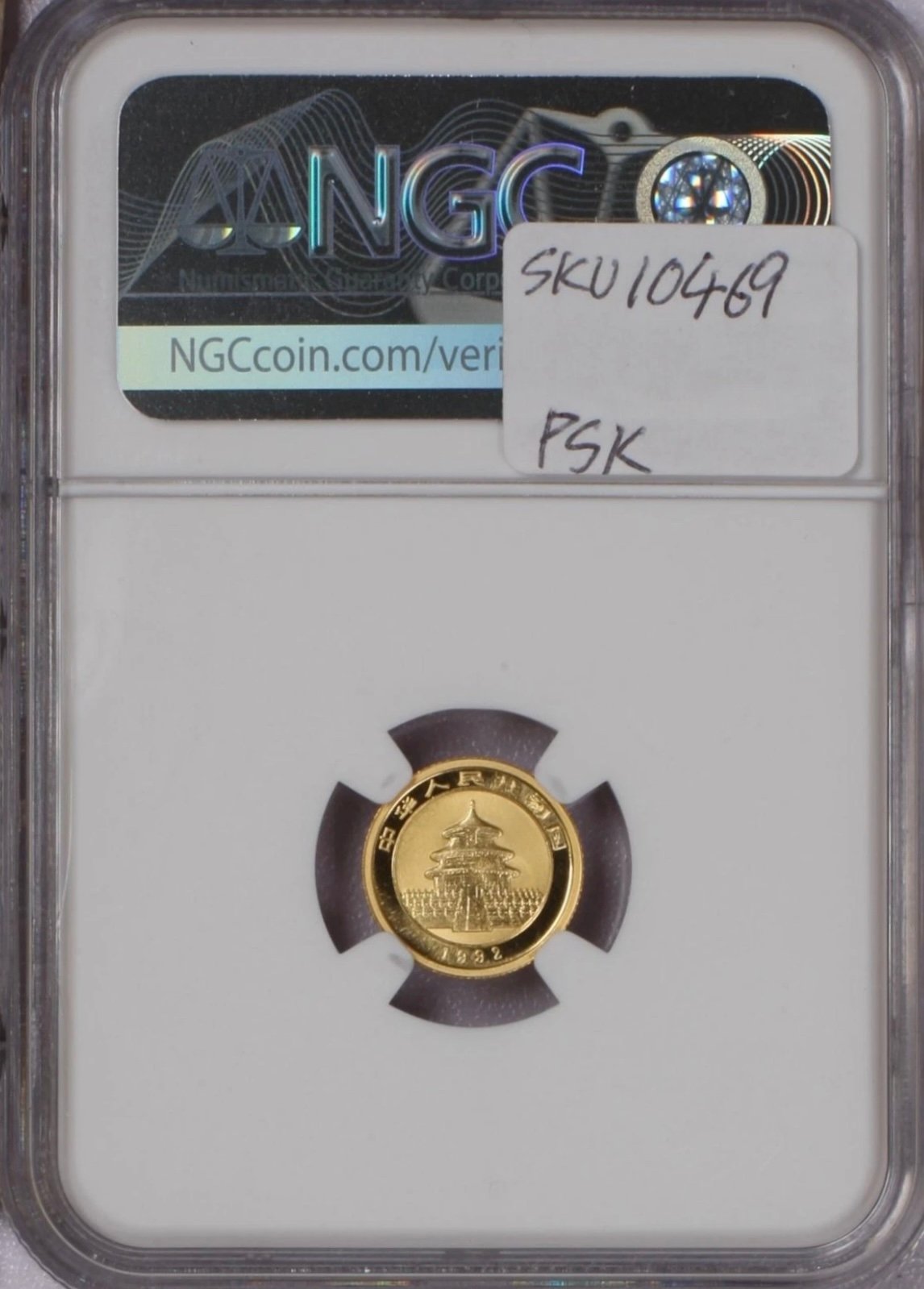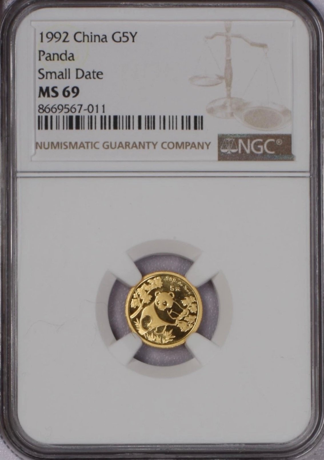 1992 1/20 Oz 5 Yuan China Gold Panda Coin Small Date MS 69