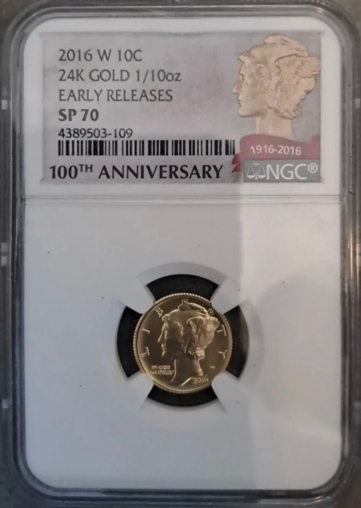 2016 W Mercury Dime 10C Gold Commemorative 1/10th Oz NGC SP70 Early Releases quantity