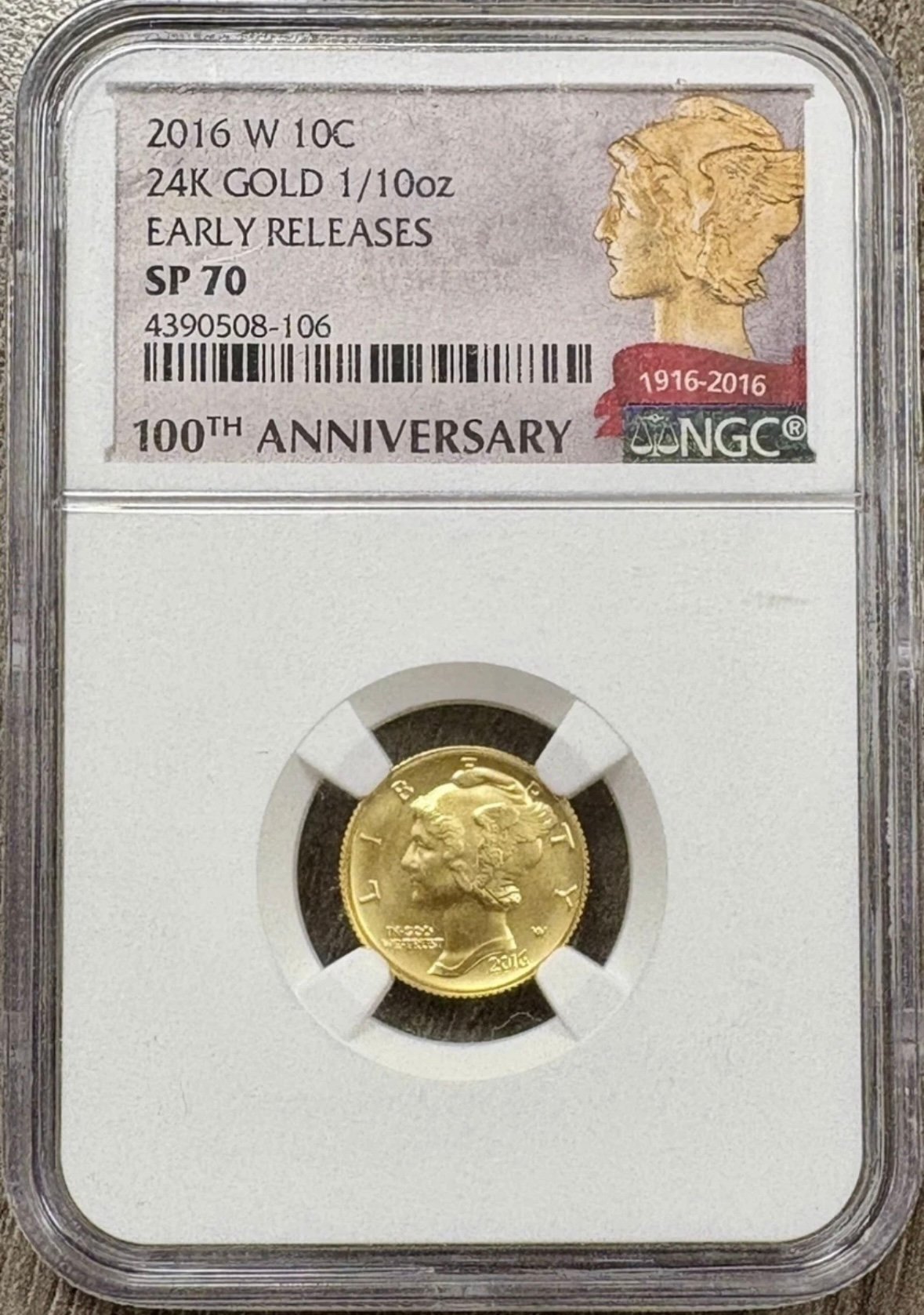 2016 W Mercury Dime 10C Gold Commemorative 1/10th Oz NGC SP70 Early Releases