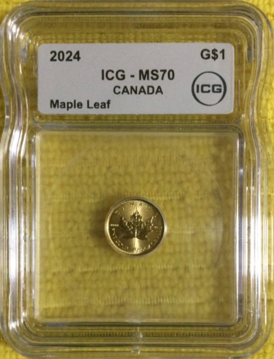 2024 $1 Canada 1/20 Oz Gold Maple Leaf Bullion Coin • MS70 • King Charles III