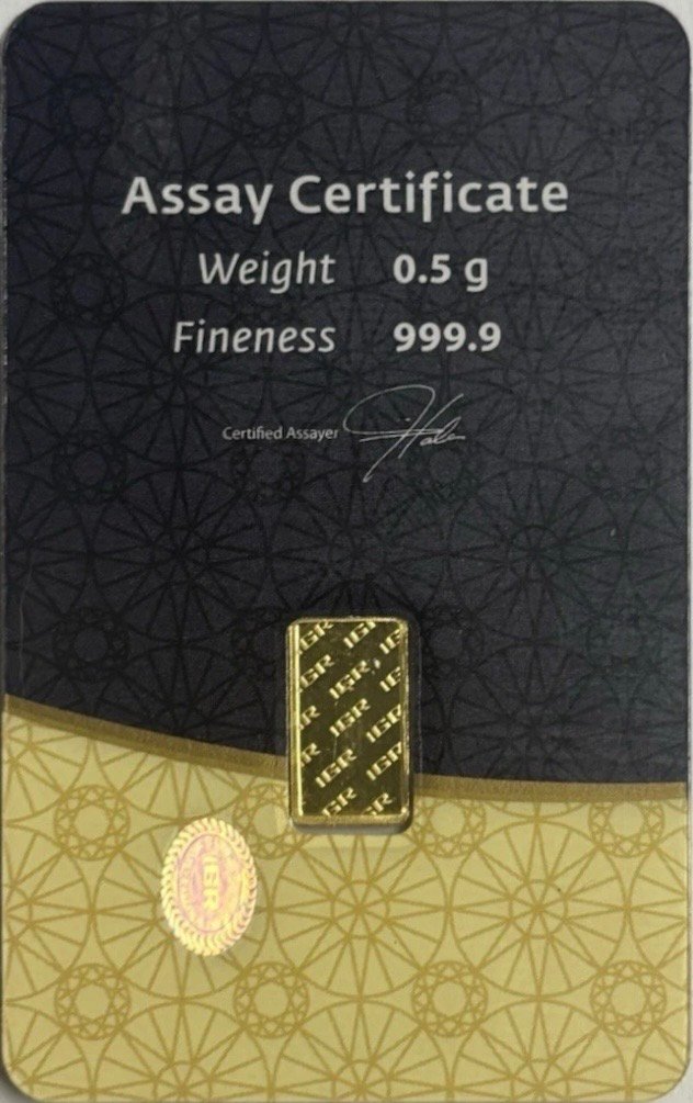 IGR Gold Bar .5 gram 1/2 Gram Gold Refinery - 999.9 Fine Sealed Assay quantity