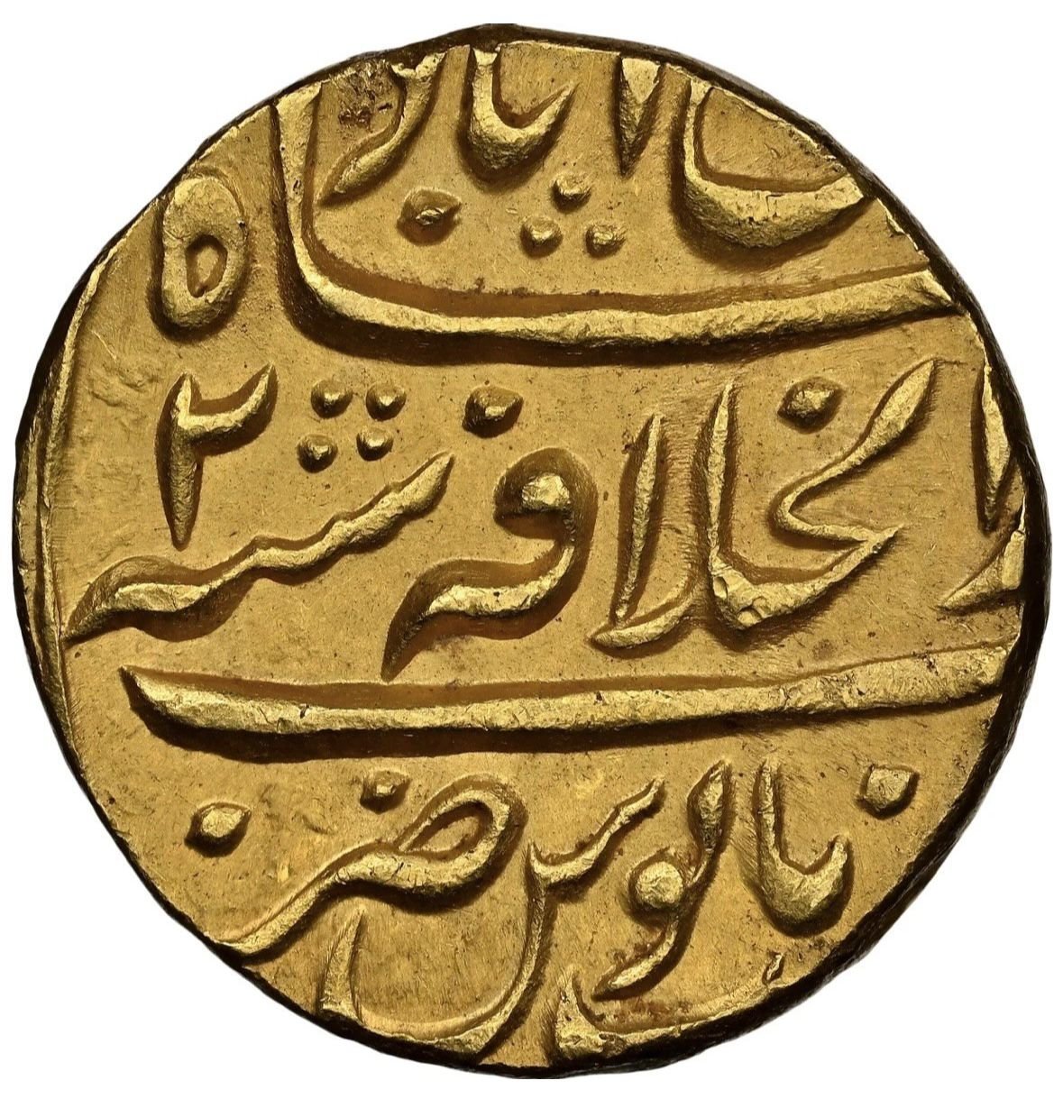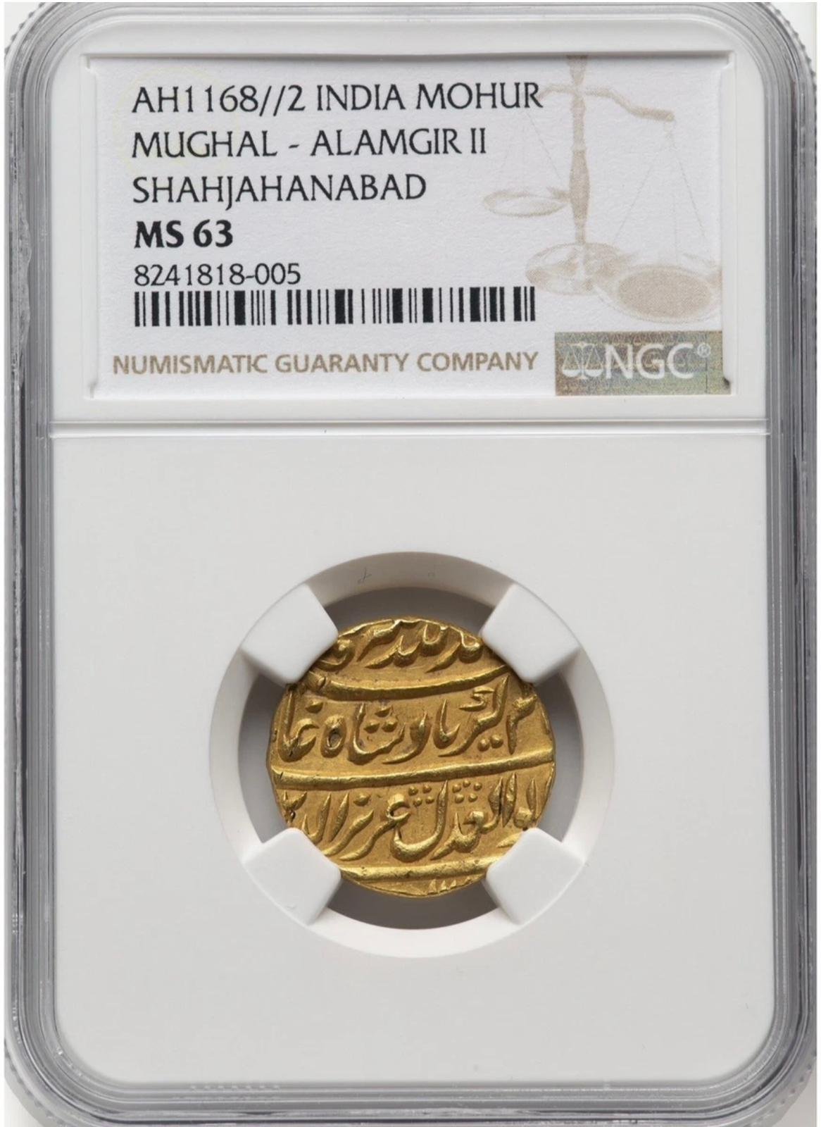 India Mughal AH1168/2 Gold Mohur Alamgir II Shahjahanabad – NGC MS63 – Rare